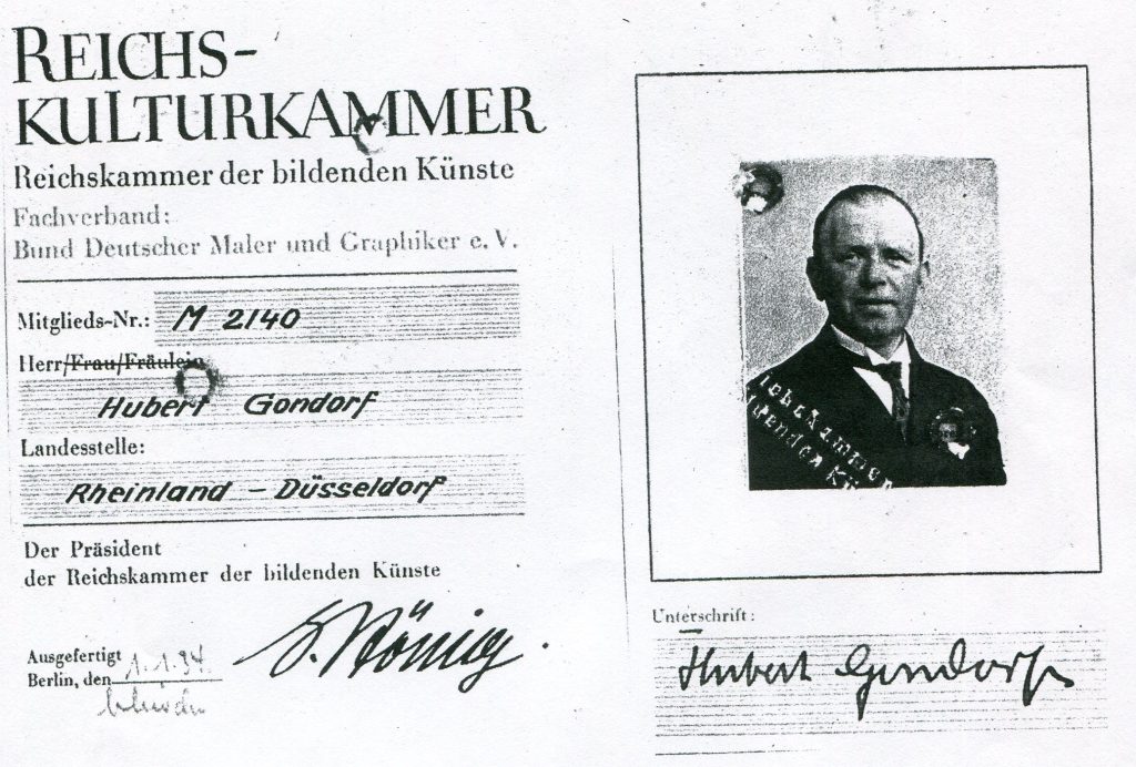 Hubert Gondorf wurde am 02.09.1881 in (Solingen-) Höhscheid geboren. Durch einen Schreibfehler des Standesbeamten wurde der richtige Name „Gondolf“ zu „Gondorf“. Kurzzeitig war er eingeschrieben an der Düsseldorfer Kunstakademie, arbeitete dann aber als Handwerker (Maler- und Anstreicher).